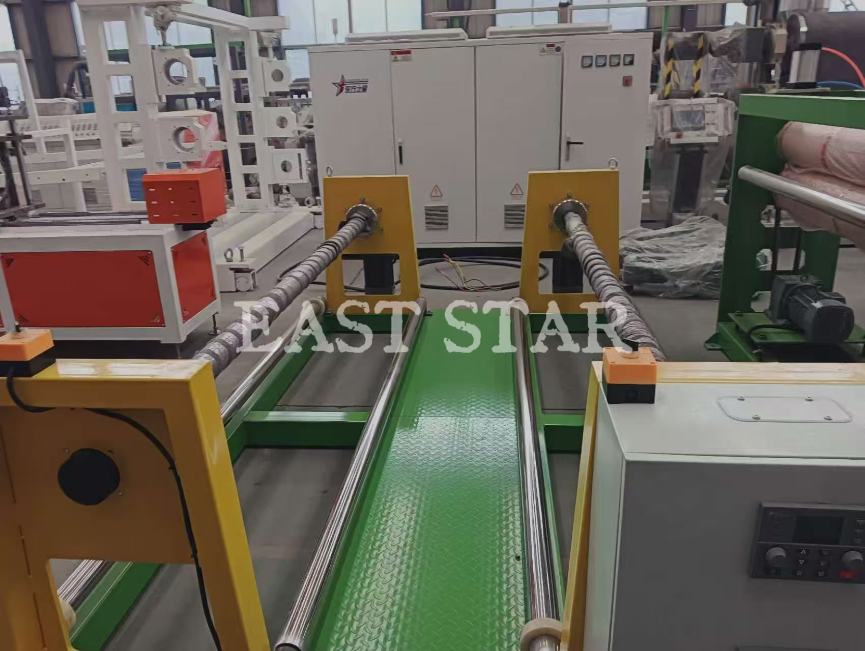 · Alma ve geri sarma cihazı: Sabit çekiş sağlar ve soğutulmuş ve şekillendirilmiş tabakayı kolay taşıma ve sonraki işlemler için otomatik olarak düzgün bir bobine sarar.