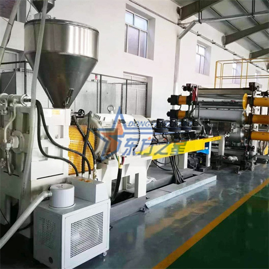 Geogrid Ekstrüzyon Ekipmanı geocell üretmek için kullanılır. Bu ürünün ilk adımı levha üretmek, ardından levhalar çevrimiçi olarak kesilip plastik levhaların birbirine bağlanmasıdır.