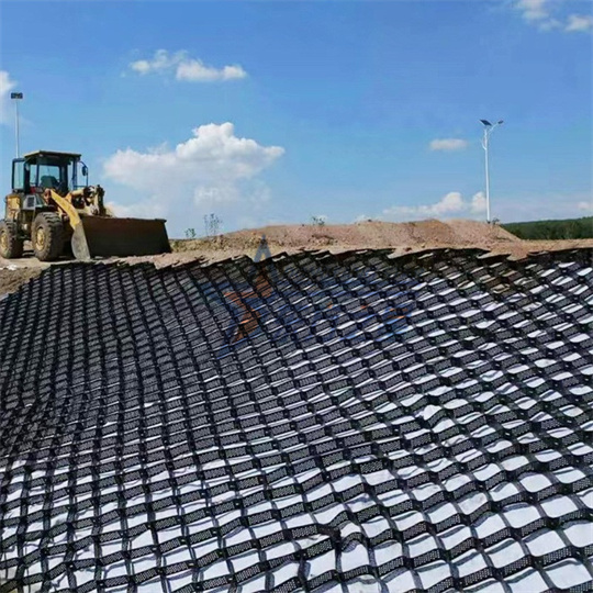 Geogrid Ekstrüzyon Ekipmanı geocell üretmek için kullanılır. Bu ürünün ilk adımı levha üretmek, ardından levhalar çevrimiçi olarak kesilip plastik levhaların birbirine bağlanmasıdır. ultrasonik kaynak ve diğer yöntemler