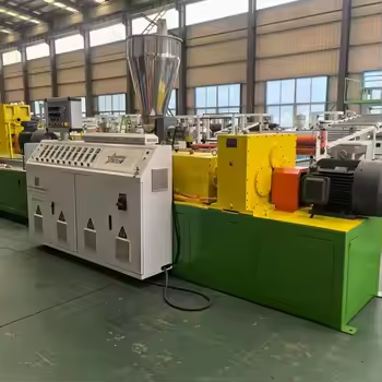 Bu, tüm üretim sürecinin temel aşamasıdır. Harmanlanan toz, bir vakumlu yükleyici aracılığıyla konik çift vidalı bir ekstrüderin hunisine emilir.