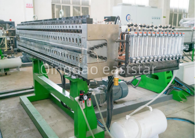 The kalıba dökmeksistemiPP açık hücreli ızgara paneli üretim hattıyüksek kaliteli kalıp çeliğinden üretilmiş, 2200 mm kalıp açıklık genişliğine sahip, 2-6 mm kalınlığında açık hücreli ızgara paneller üretebilmektedir. Kalıp, eşit sıcaklık sağlamak için dahili ısıtma kullanan, 4KW/bölge ısıtma gücüne sahip 11 bölgeli bir ısıtma sistemi ile donatılmıştır. Vakumlu şekillendirme ve soğutma platformu, stabil tabaka oluşturmayı sağlamak için 15KW'lık bir vakum pompasıyla donatılmış, iki aşamalı vakumlu soğutma ve şekillendirme artı tek aşamalı soğutma ve şekillendirmeden oluşan bir kombinasyon tasarımını benimser. Bu profesyonel konfigürasyonlar, açık hücreli ızgara paneli üretim hattında üretilen ürünlerin düzgün bir ızgara yapısına ve sabit boyutsal doğruluğa sahip olmasını sağlar.