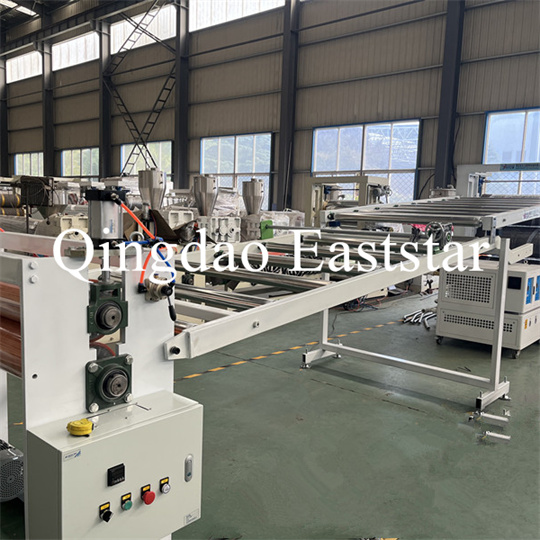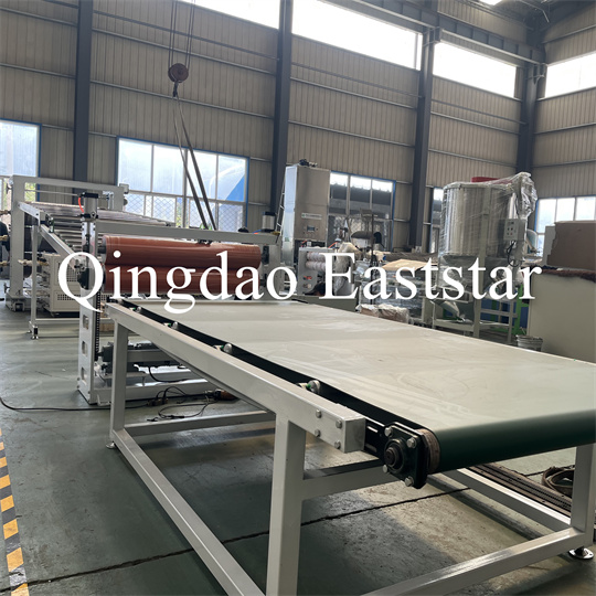 braket, bir kauçuk rulo çekiş makinesi, bir kesme makinesi ve bir konveyör bant cihazı. PVC kaymaz plaka ekstruder Ekipman, ürün genişliği