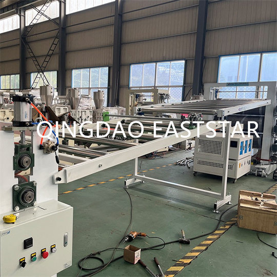 PVC kanopi paneli ekipmanı esas olarak çift vidalı bir ekstruder, bir plaka kalıbı, üç silindirli bir perdah makinesi, bir soğutma braketi, bir kauçuk silindirli çekiş makinesi, bir kesme makinesi ve bir taşıma cihazından oluşur.