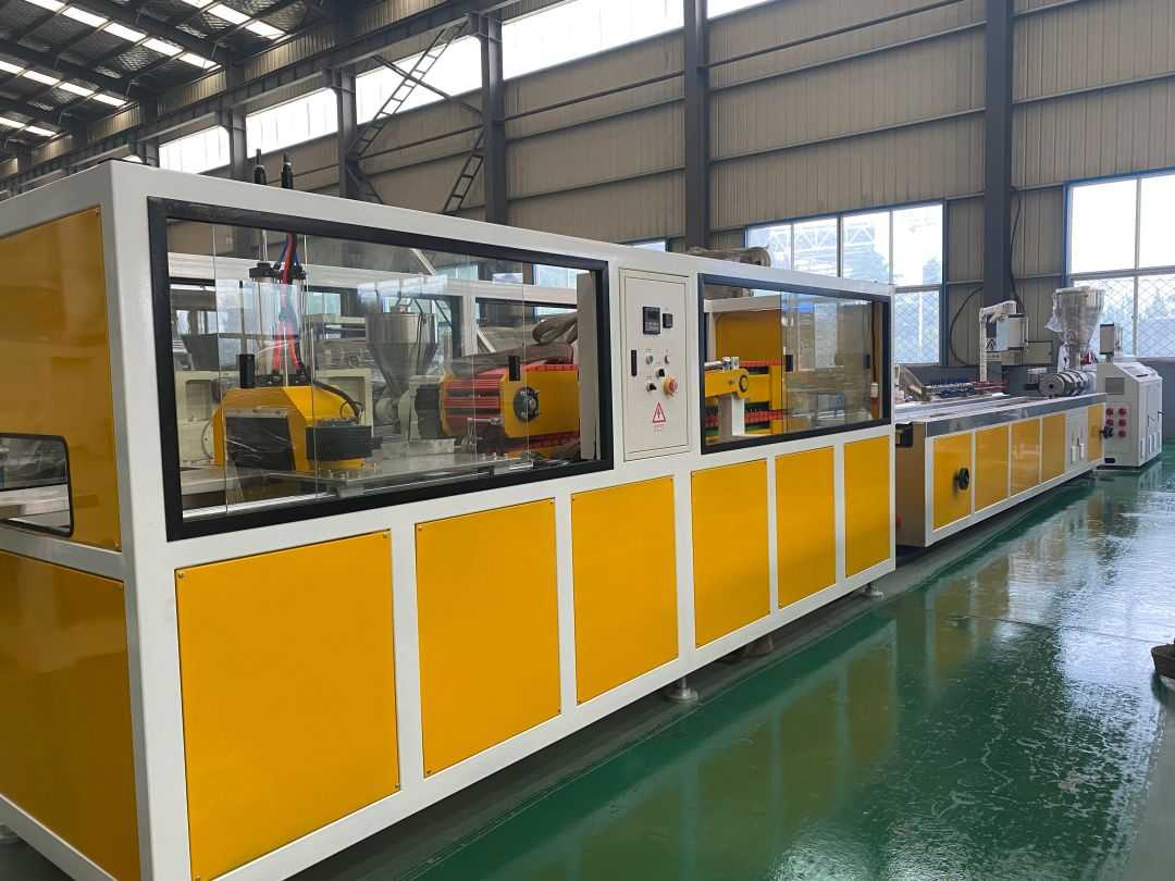 PVC ahşap plastik zemin ekstrüzyon üretim hattı - Ahşap plastik zemin ekstrüzyon üretim hattı, PE tozu + ahşap tozu hammaddelerinin ekstrüzyonu, plastikleştirilmesi ve kalıplanması için özel olarak kullanılan SJZ65/132 konik çift vidalı ekstruder kullanır. Yüksek çıktı, iyi plastikleştirme etkisi ve düşük enerji tüketimi özelliklerine sahiptir.