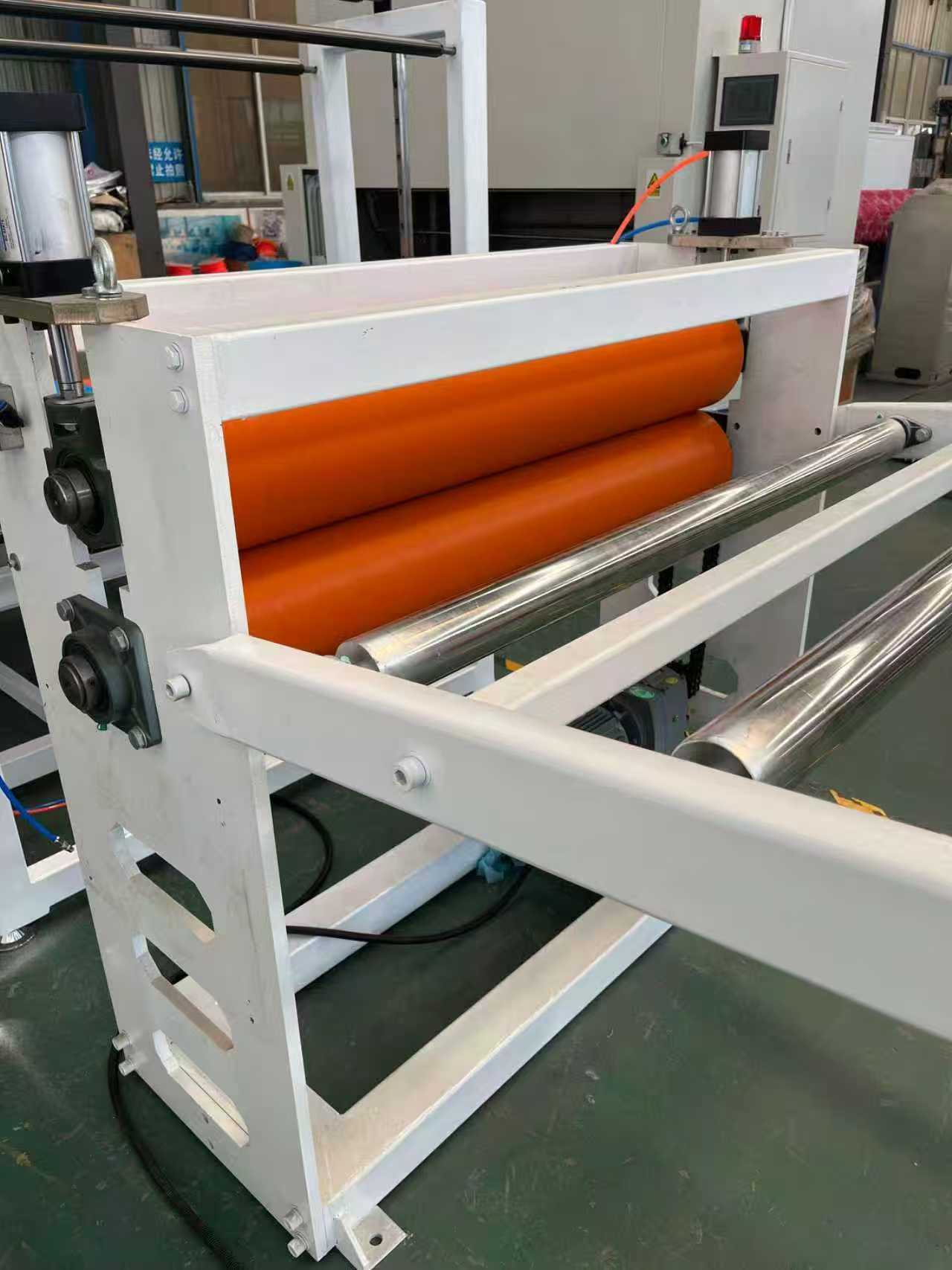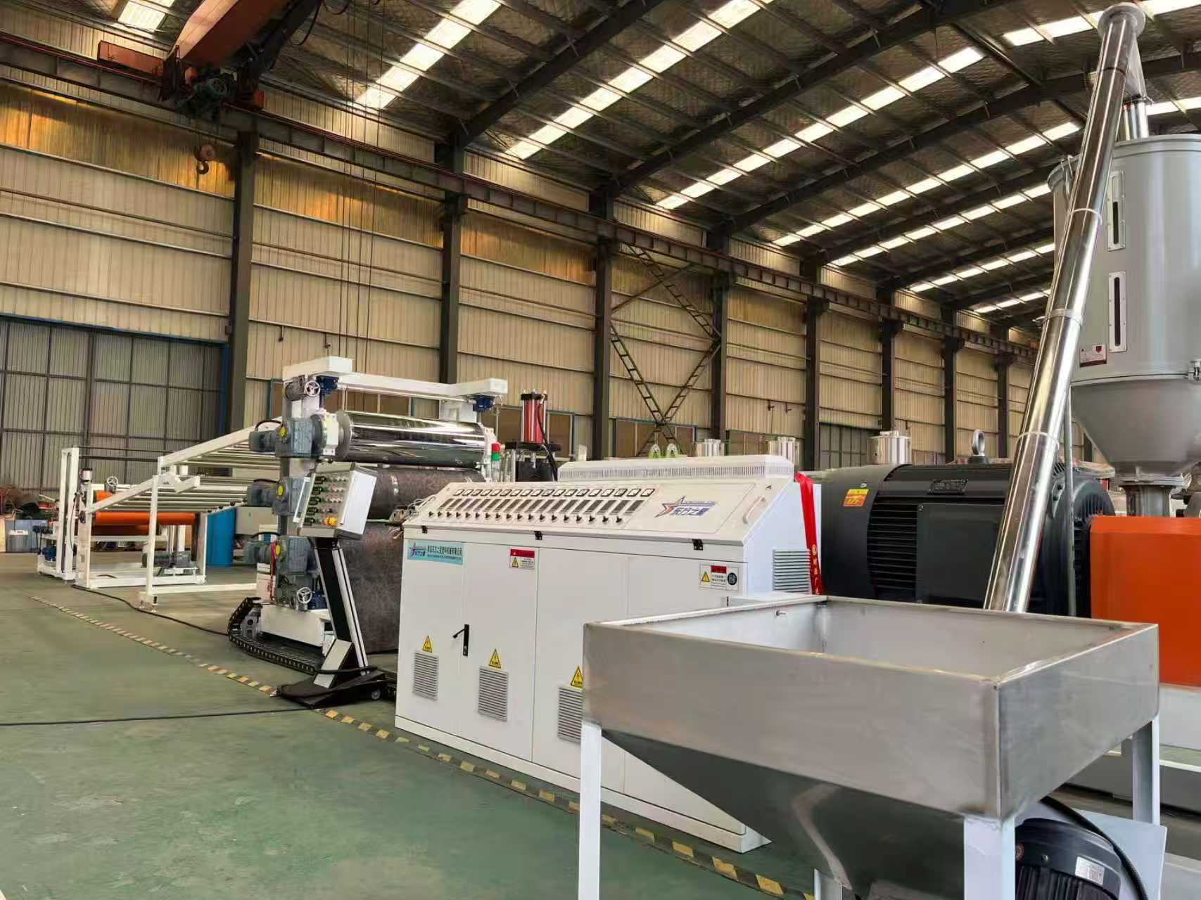TPE-1000mm kaymaz paspas ekipmanı araba paspasları: Ekipman esas olarak tek vidalı bir ekstruder, üç silindirli bir perdah makinesi, 6 metrelik bir soğutma braketi, bir kauçuk rulo çekiş makinesi, bir kesme makinesi ve bir konveyör bant cihazından oluşur.