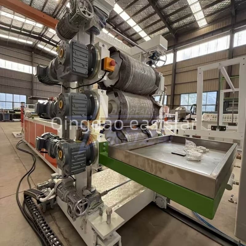 3 silindirli kalender (∮320mm×500mm) bağımsız olarak kontrol edilen, ayna kaplamalı silindirlere (Sertlik RC60-65) sahiptir. Ayrı sıcaklık ve hız kontrolüyle hassas soğutma ve perdahlama sağlayarak olağanüstü düzlüğe, pürüzsüzlüğe ve tutarlı kalınlığa sahip levhalar elde edilmesini sağlar.